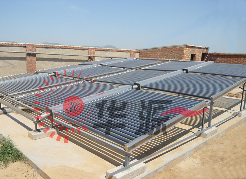 華源太陽供熱水工程是由集熱器、保溫水箱、控制系統、自動上水控制箱、循環泵、管路配件等有機組合而成的集熱供水系統。整個系統自動運行,使用安全,維護方便。可根據用水量、安裝場地、用戶要求進行靈活的排列組合。